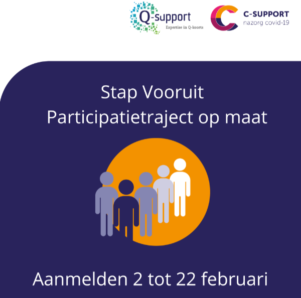 C-support en Q-support starten het nieuwe participatietraject Stap Vooruit voor mensen met post-COVID, Q-koorts of klachten na COVID19-vaccinatie. Het traject ondersteunt mensen die na hun WIA-beschikking willen onderzoeken hoe zij binnen hun mogelijkheden meer kunnen participeren in de samenleving.